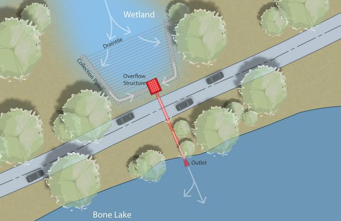 EOR developed an innovative, rough fish barrier in the subsurface filtration of a lake that eliminates the passage of Aquatic Invasive Species (AIS). One barrier was installed at the Lake's inlet and the other located at the Lake's outlet. This low velocity fish barrier maintains water flow and lake levels while also preventing upstream migration of carp into Bone Lake and post-spawning downstream migration out of Bone Lake. This barrier will limit lake and wetland disturbance by rough fish, resulting in both water quality and habitat improvements. This installation represents the first implementation of this design approach at this scale.