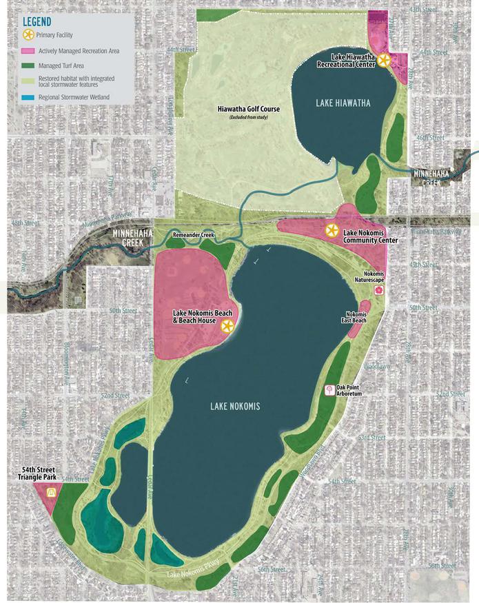 EOR assisted in the completion of the first master plan for Lake Nokomis and Lake Hiawatha in over half a century. Water and natural resources are the dominate components of these parks and were the top priorities communicated in stakeholder feedback. EOR's environmental knowledge and expertise was vital in developing the plan, including identifying and prioritizing natural resources. EOR's most vital role on this plan communicating with technical and advisory committee's regarding potential environmental impacts, as well as the opportunities associated with plan's data and options.