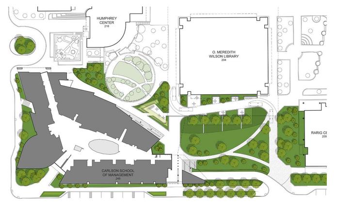 Plagued with constant repair and maintenance issues, the poorly worn Carlson School of Management has begun to look at incorporating more sustainable and green infrastructural elements in the repair and re-design of the outdoor plaza. After investigating the existing conditions, EOR made civil engineering & landscape architecture recommendations for repairs, and new designs to the outdoor plaza. These designs incorporated sustainable elements to protect the below ground spaces from leaking, addressed the U of M's stormwater management goals, and provided a lush and safe landscape for students to inhabit and enjoy.