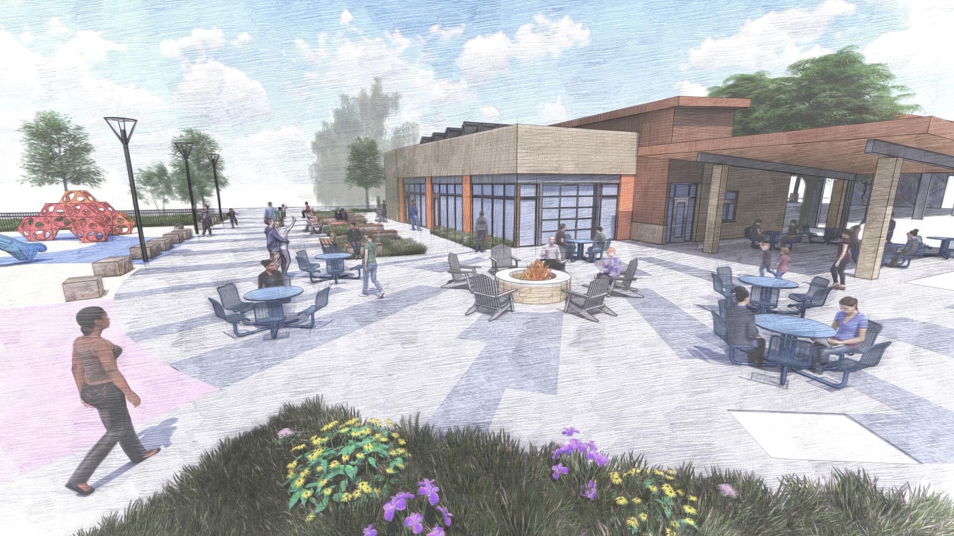 This park provides an activity hub for the neighborhood and community that is centered around a 4-season building, including a pedestrian plaza with fireplace, playscapes for all ages, a full-sized basketball court with pickleball lines, new parking area, and a one-of-a kind bike and skate park. The main bike portion is designed to challenge all ages of uses, with multiple routes and additional features designed to develop user's skill and techniques.