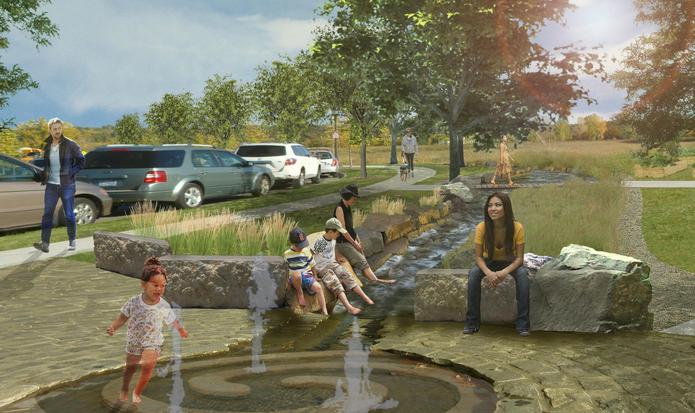 EOR and the Capitol Region Watershed District collaborated on a multi-functional park design located on a former brownfield site. Adjacent to a new school, residential neighborhoods, and the Mississippi River, the park's design focuses on interactive water elements, seasonal recreation, innovative water treatment strategies, and migratory bird habitat. A Moist Soil Management strategy creates a series of "habitat magnets" across the site, and individual eco-cells develop unique ecological conditions. Multiple trails allow park users to explore diverse ecologies and pioneering passive-use spaces. The design also ensures visitors can experience the park year-round, including a bio-cleansing wading/skating plaza, interactive mist/ice fountains, large open lawns, and a distinctive planting scheme.