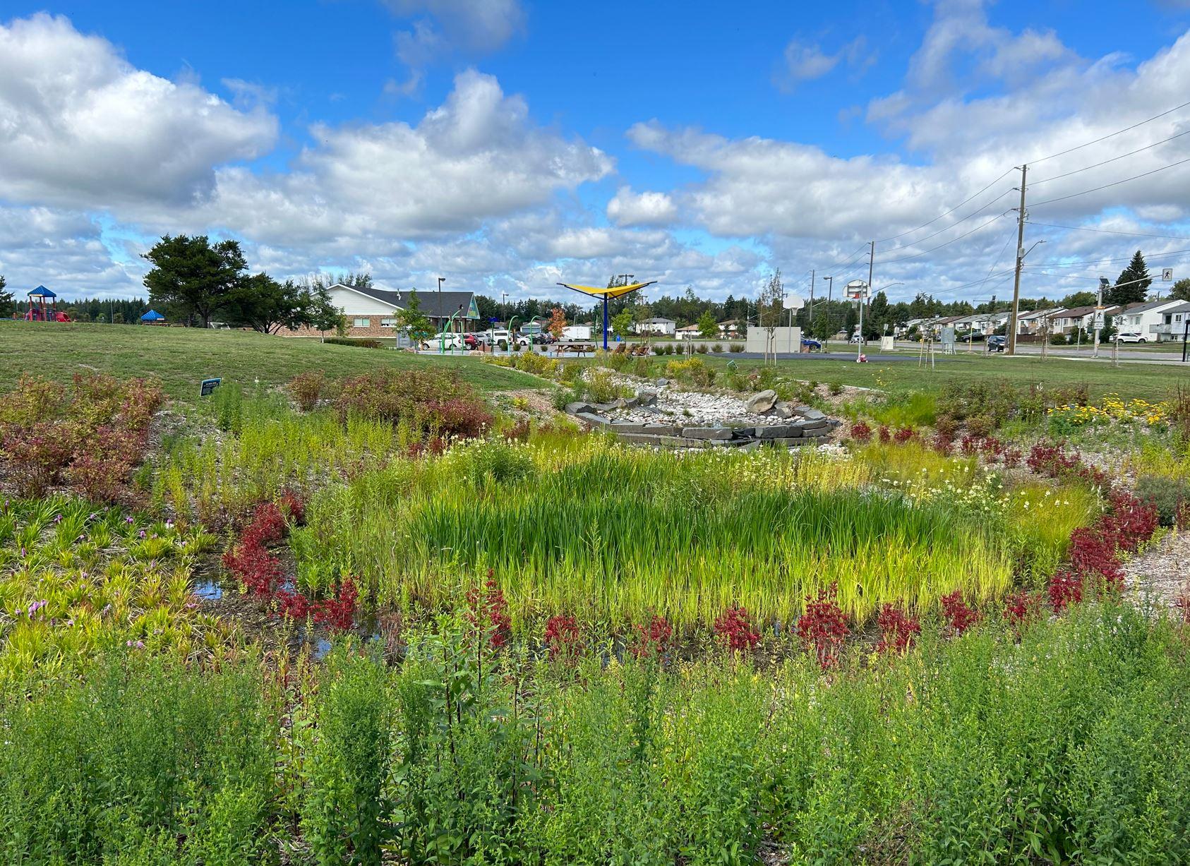 EOR used green infrastructure techniques in the design of a unique project that captures water from the park's splash pad in a biofiltration swale and basin. These features filter and infiltrate the water before it enters the storm sewer system and represents a first in Canada, for the treatment of a water-featured, play element. Additionally, the captured and reused water, recharges groundwater resources, lessening pressure on the city's water systems.