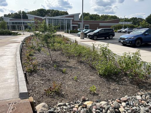 Use of multiple stormwater practices in the re-design of a large parking area addresses stormwater runoff water quality.